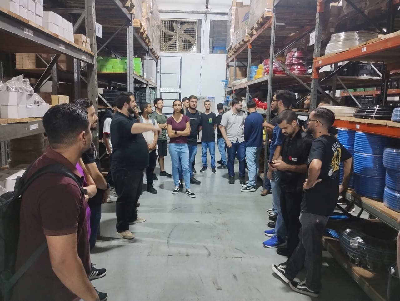 Ao todo, a atividade reuniu 28 alunos, 2 professores e 3 colaboradores da empresa, que conduziram a visita. Além disso, o encontro permitiu contato direto com processos e aplicações industriais ligados aos conteúdos desenvolvidos em sala de aula.